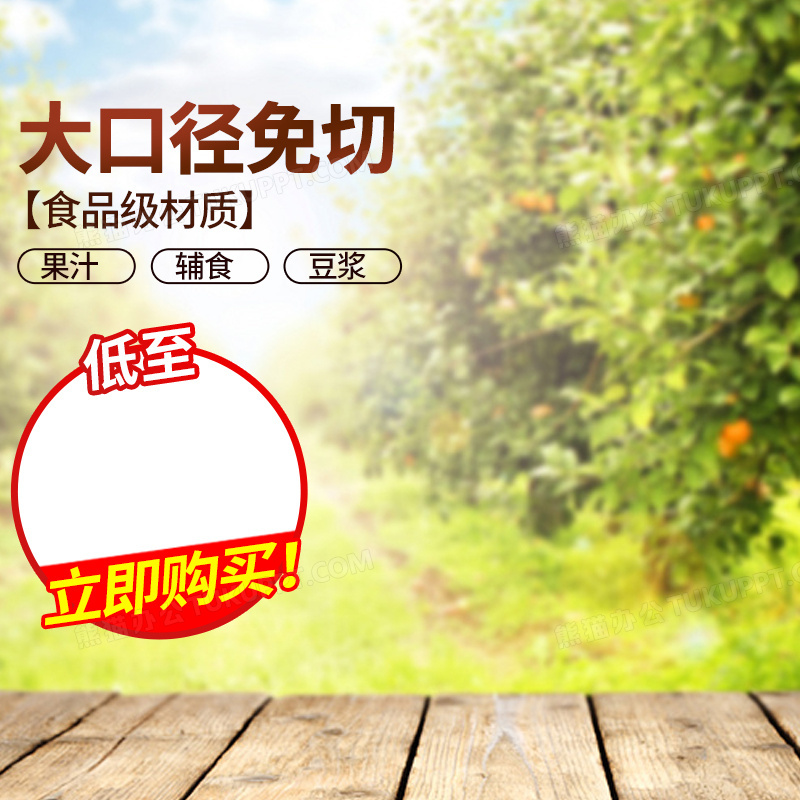 本作品内容为榨汁机破壁机果园PSD分层主图背景素材, 格式为 psd, 图片尺寸为800 x 800, 作品中背景图片无需修改, 源文件无水印,可以直接使用, 欢迎使用熊猫办公。 如认为平台内容涉嫌侵权,可通过邮件:tousu@tukuppt.com提出书面通知,我们将及时处理。