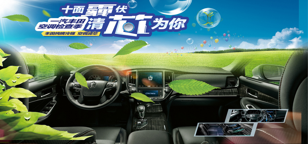 本作品内容为绿色清新豪车空调, 格式为 psd, 图片尺寸为1920 x 900, 作品中背景图片无需修改, 源文件无水印,可以直接使用, 欢迎使用熊猫办公。 如认为平台内容涉嫌侵权,可通过邮件:tousu@tukuppt.com提出书面通知,我们将及时处理。