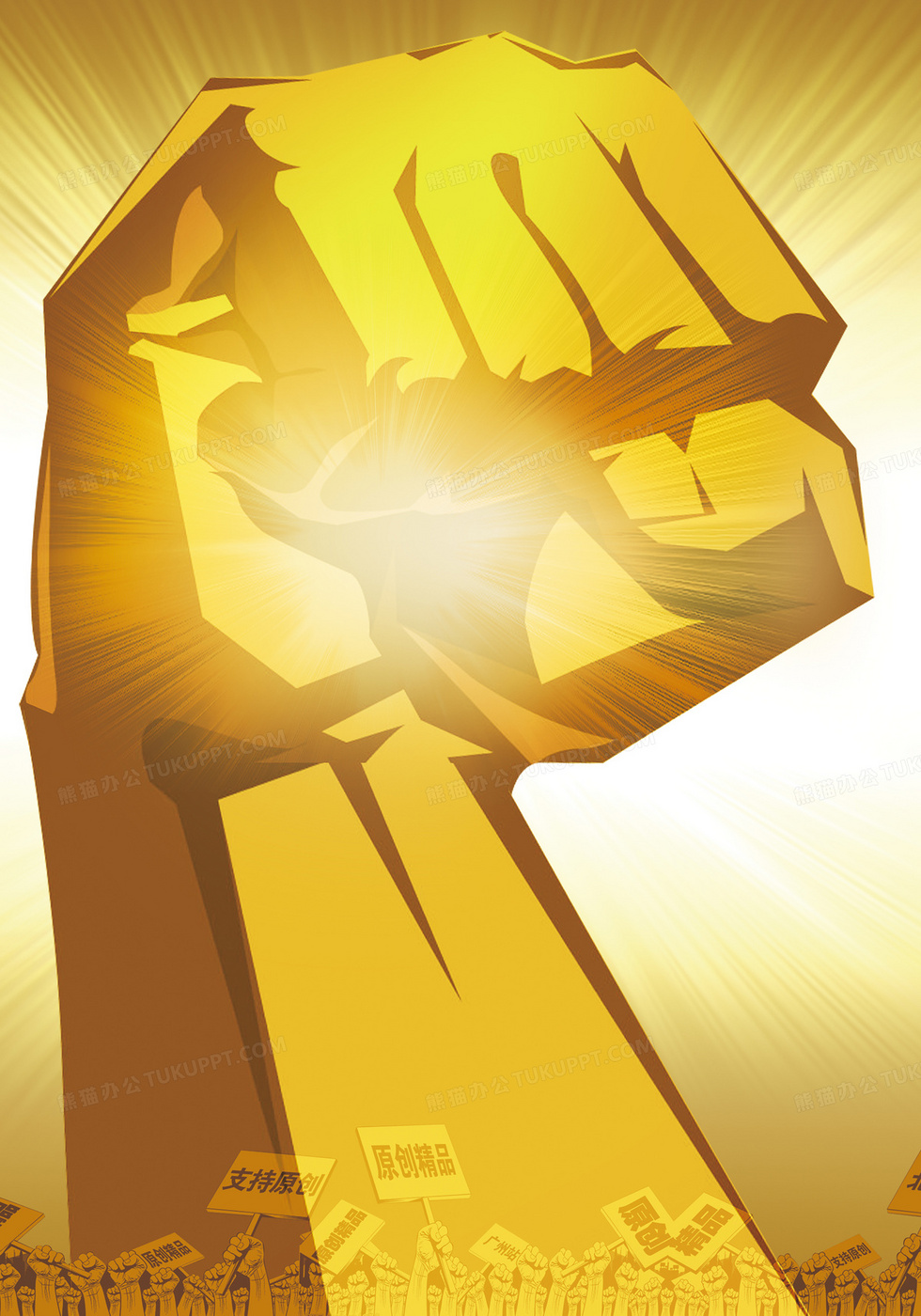 本作品内容为金色拳头背景, 格式为 psd, 图片尺寸为3500 x 5000, 作品中背景图片无需修改, 源文件无水印,可以直接使用, 欢迎使用熊猫办公。 如认为平台内容涉嫌侵权,可通过邮件:tousu@tukuppt.com提出书面通知,我们将及时处理。