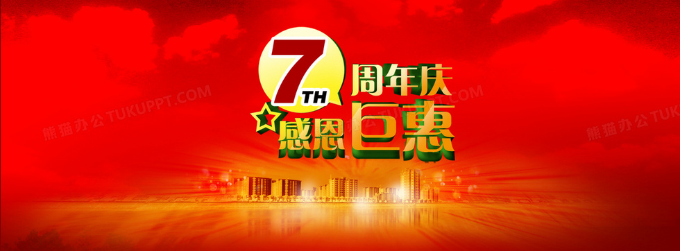 本作品内容为周年庆背景图片, 格式为 psd, 图片尺寸为1920 x 709, 作品中背景图片无需修改, 源文件无水印,可以直接使用, 欢迎使用熊猫办公。 如认为平台内容涉嫌侵权,可通过邮件:tousu@tukuppt.com提出书面通知,我们将及时处理。