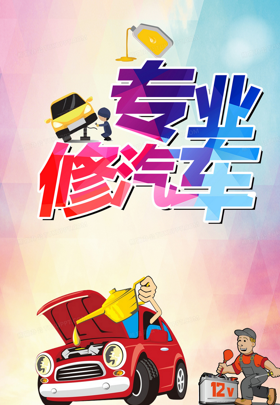 本作品内容为专业汽修海报背景, 格式为 psd, 图片尺寸为2937 x 4241, 作品中背景图片无需修改, 源文件无水印,可以直接使用, 欢迎使用熊猫办公。 如认为平台内容涉嫌侵权,可通过邮件:tousu@tukuppt.com提出书面通知,我们将及时处理。