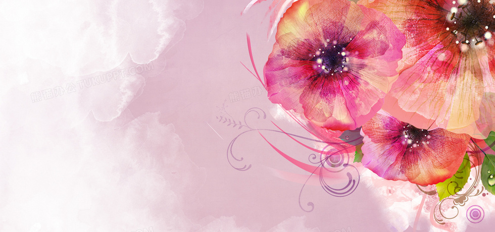 本作品内容为水墨手绘花朵背景, 格式为 psd, 图片尺寸为1920 x 900, 作品中背景图片无需修改, 源文件无水印,可以直接使用, 欢迎使用熊猫办公。 如认为平台内容涉嫌侵权,可通过邮件:tousu@tukuppt.com提出书面通知,我们将及时处理。
