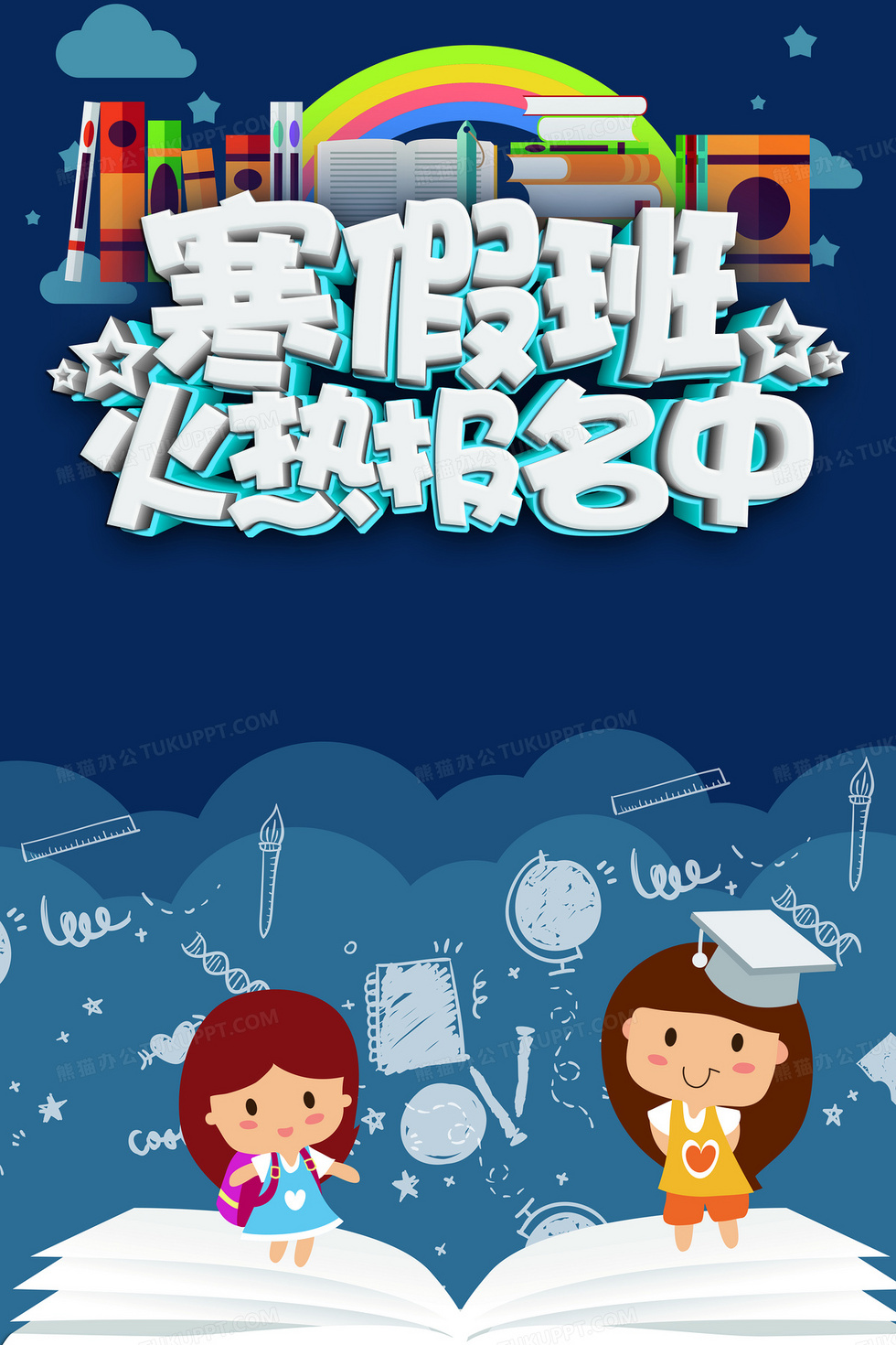 本作品内容为蓝色寒假班招生海报背景, 格式为 psd, 图片尺寸为3543 x 5315, 作品中背景图片无需修改, 源文件无水印,可以直接使用, 欢迎使用熊猫办公。 如认为平台内容涉嫌侵权,可通过邮件:tousu@tukuppt.com提出书面通知,我们将及时处理。