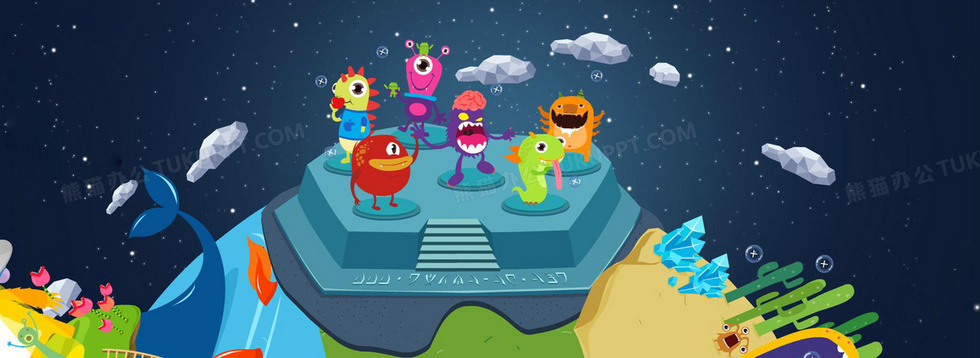 本作品内容为怪物星球, 格式为 jpg, 图片尺寸为1920 x 700, 作品中背景图片无需修改, 源文件无水印,可以直接使用, 欢迎使用熊猫办公。 如认为平台内容涉嫌侵权,可通过邮件:tousu@tukuppt.com提出书面通知,我们将及时处理。