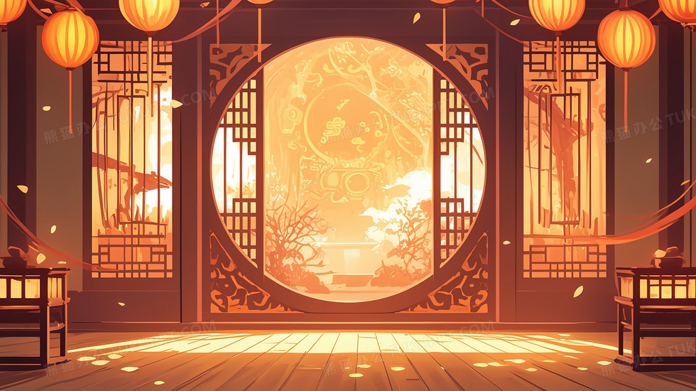 本作品内容为中式门窗建筑插画, 格式为 jpg, 大小3 MB, 图片尺寸为2912 x 1632, 源文件无水印, 欢迎使用熊猫办公。 如认为平台内容涉嫌侵权,可通过邮件:tousu@tukuppt.com提出书面通知,我们将及时处理。