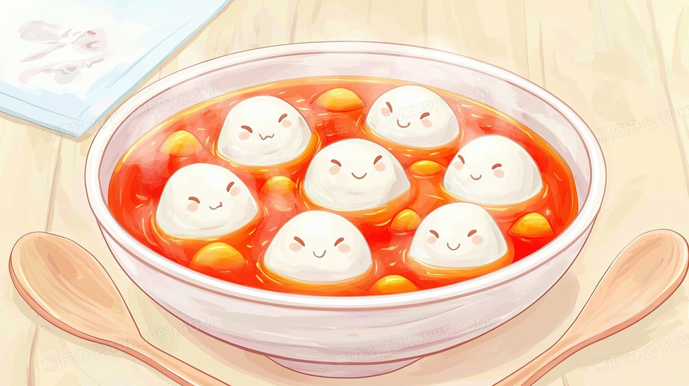 本作品内容为桌面上的可爱拟人美食汤圆插画, 格式为 jpg, 大小2 MB, 图片尺寸为2912 x 1632, 源文件无水印, 欢迎使用熊猫办公。 如认为平台内容涉嫌侵权,可通过邮件:tousu@tukuppt.com提出书面通知,我们将及时处理。