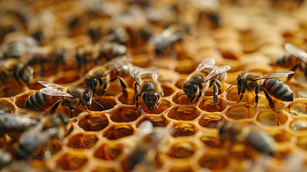 本作品内容为蜂巢上的蜜蜂酿蜜特写插画, 格式为 jpg, 大小3 MB, 图片尺寸为2912 x 1632, 源文件无水印, 欢迎使用熊猫办公。 如认为平台内容涉嫌侵权,可通过邮件:tousu@tukuppt.com提出书面通知,我们将及时处理。