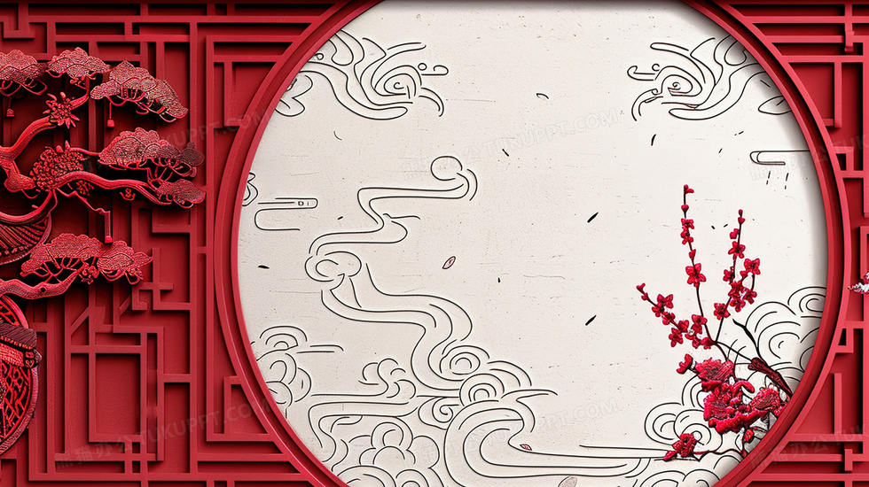 本作品内容为古风窗花红色背景, 格式为 jpg, 大小4 MB, 图片尺寸为2912 x 1632, 作品中背景图片无需修改, 源文件无水印,可以直接使用, 欢迎使用熊猫办公。 如认为平台内容涉嫌侵权,可通过邮件:tousu@tukuppt.com提出书面通知,我们将及时处理。