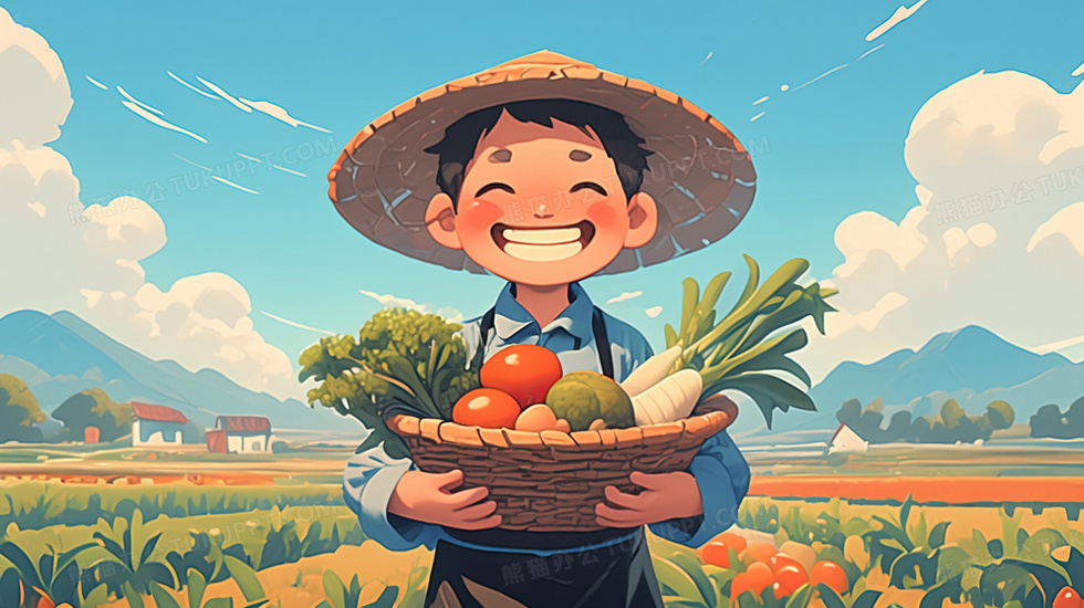 本作品内容为秋天农民菜园喜悦丰收采摘插画, 格式为 jpg, 大小3 MB, 图片尺寸为2912 x 1632, 源文件无水印, 欢迎使用熊猫办公。 如认为平台内容涉嫌侵权,可通过邮件:tousu@tukuppt.com提出书面通知,我们将及时处理。