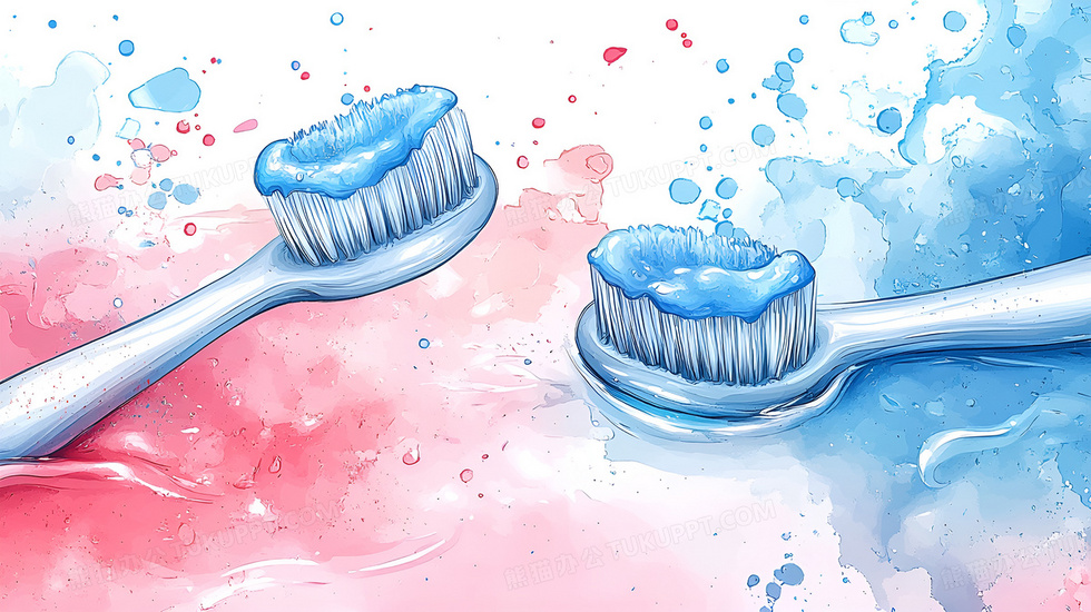本作品内容为红蓝水彩风牙膏牙刷背景, 格式为 jpg, 大小3 MB, 图片尺寸为2912 x 1632, 作品中背景图片无需修改, 源文件无水印,可以直接使用, 欢迎使用熊猫办公。 如认为平台内容涉嫌侵权,可通过邮件:tousu@tukuppt.com提出书面通知,我们将及时处理。
