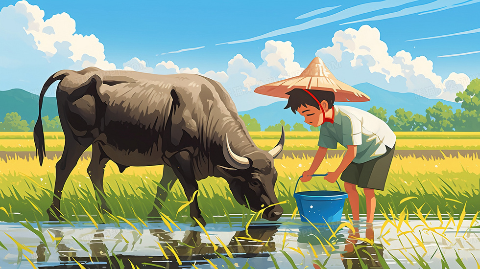 本作品内容为农村农田里农民与耕地的水牛插画, 格式为 jpg, 大小3 MB, 图片尺寸为2912 x 1632, 源文件无水印, 欢迎使用熊猫办公。 如认为平台内容涉嫌侵权,可通过邮件:tousu@tukuppt.com提出书面通知,我们将及时处理。