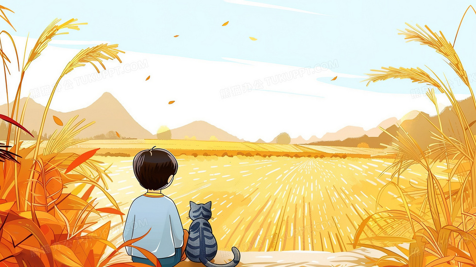 本作品内容为秋季坐田野边的男孩和猫咪插画, 格式为 jpg, 大小3 MB, 图片尺寸为2912 x 1632, 源文件无水印, 欢迎使用熊猫办公。 如认为平台内容涉嫌侵权,可通过邮件:tousu@tukuppt.com提出书面通知,我们将及时处理。