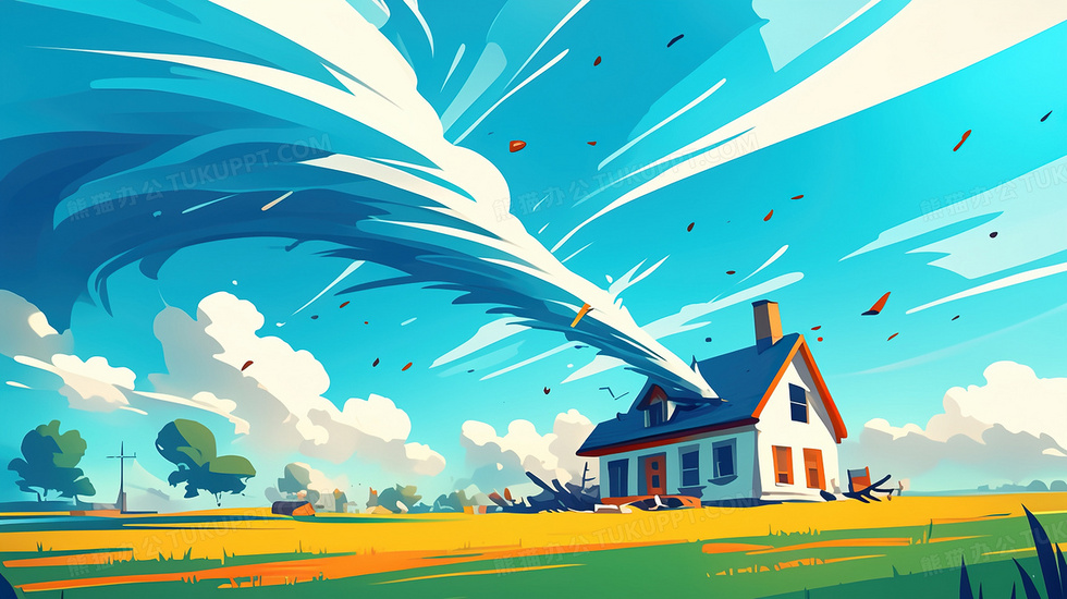 本作品内容为恶劣天气龙卷风自然灾害插画, 格式为 jpg, 大小3 MB, 图片尺寸为2912 x 1632, 源文件无水印, 欢迎使用熊猫办公。 如认为平台内容涉嫌侵权,可通过邮件:tousu@tukuppt.com提出书面通知,我们将及时处理。