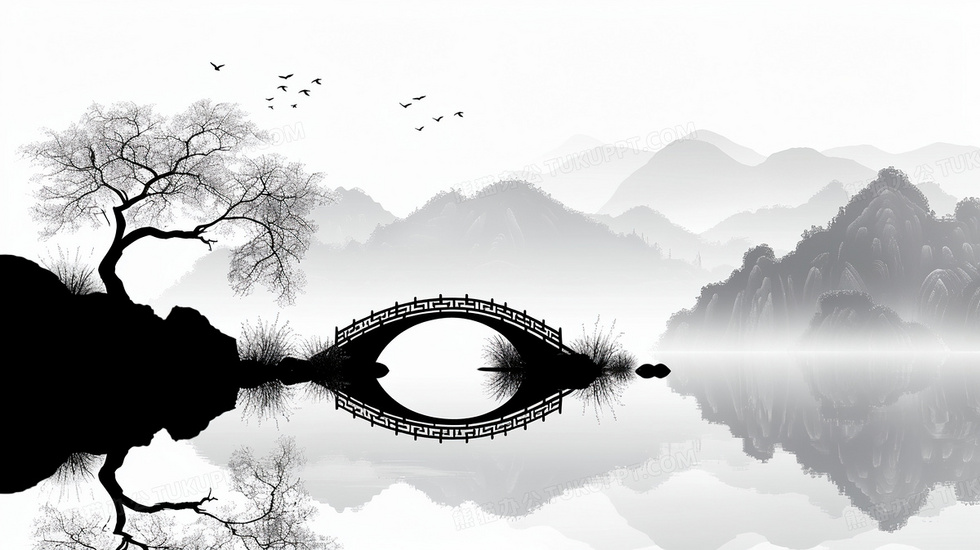 本作品内容为黑白中国风水墨石拱桥背景, 格式为 jpg, 大小2 MB, 图片尺寸为2912 x 1632, 作品中背景图片无需修改, 源文件无水印,可以直接使用, 欢迎使用熊猫办公。 如认为平台内容涉嫌侵权,可通过邮件:tousu@tukuppt.com提出书面通知,我们将及时处理。