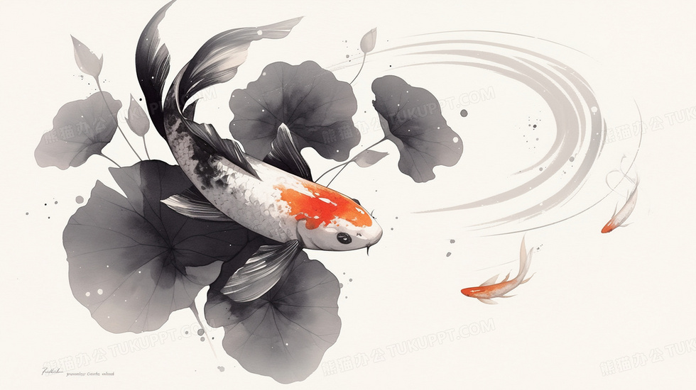 本作品内容为国风水墨荷叶鲤鱼背景图, 格式为 jpg, 大小2 MB, 图片尺寸为2912 x 1632, 作品中背景图片无需修改, 源文件无水印,可以直接使用, 欢迎使用熊猫办公。 如认为平台内容涉嫌侵权,可通过邮件:tousu@tukuppt.com提出书面通知,我们将及时处理。
