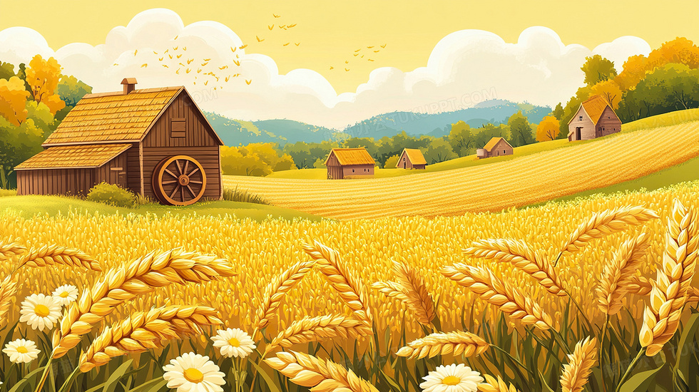 本作品内容为世界粮食日成熟丰收麦田风景插画, 格式为 jpg, 大小4 MB, 图片尺寸为2912 x 1632, 源文件无水印, 欢迎使用熊猫办公。 如认为平台内容涉嫌侵权,可通过邮件:tousu@tukuppt.com提出书面通知,我们将及时处理。