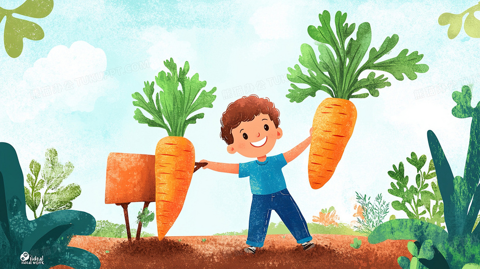 本作品内容为世界粮食日农民胡萝卜丰收插画, 格式为 jpg, 大小4 MB, 图片尺寸为2912 x 1632, 源文件无水印, 欢迎使用熊猫办公。 如认为平台内容涉嫌侵权,可通过邮件:tousu@tukuppt.com提出书面通知,我们将及时处理。