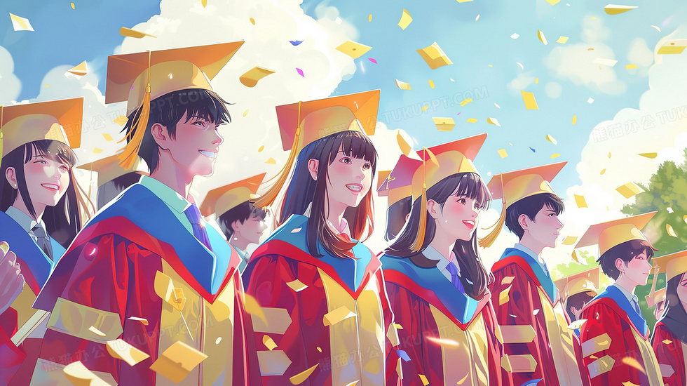 本作品内容为毕业生穿学士服树下拍照合影插画, 格式为 jpg, 大小3 MB, 图片尺寸为2912 x 1632, 源文件无水印, 欢迎使用熊猫办公。 如认为平台内容涉嫌侵权,可通过邮件:tousu@tukuppt.com提出书面通知,我们将及时处理。