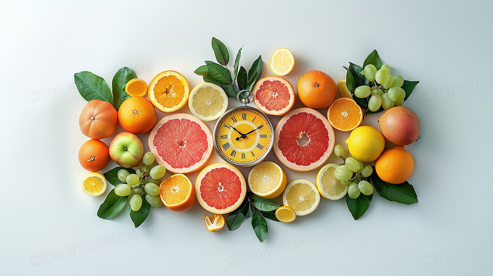 本作品内容为简约时钟水果背景图, 格式为 jpg, 大小3 MB, 图片尺寸为2912 x 1632, 作品中背景图片无需修改, 源文件无水印,可以直接使用, 欢迎使用熊猫办公。 如认为平台内容涉嫌侵权,可通过邮件:tousu@tukuppt.com提出书面通知,我们将及时处理。