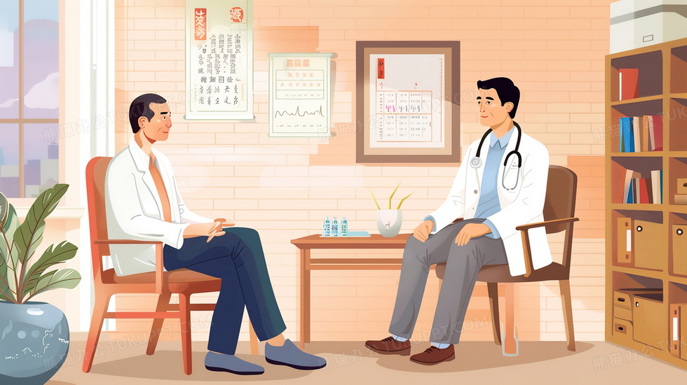 本作品内容为诊所青年男医生给病人看病插画, 格式为 jpg, 大小2 MB, 图片尺寸为2912 x 1632, 源文件无水印, 欢迎使用熊猫办公。 如认为平台内容涉嫌侵权,可通过邮件:tousu@tukuppt.com提出书面通知,我们将及时处理。