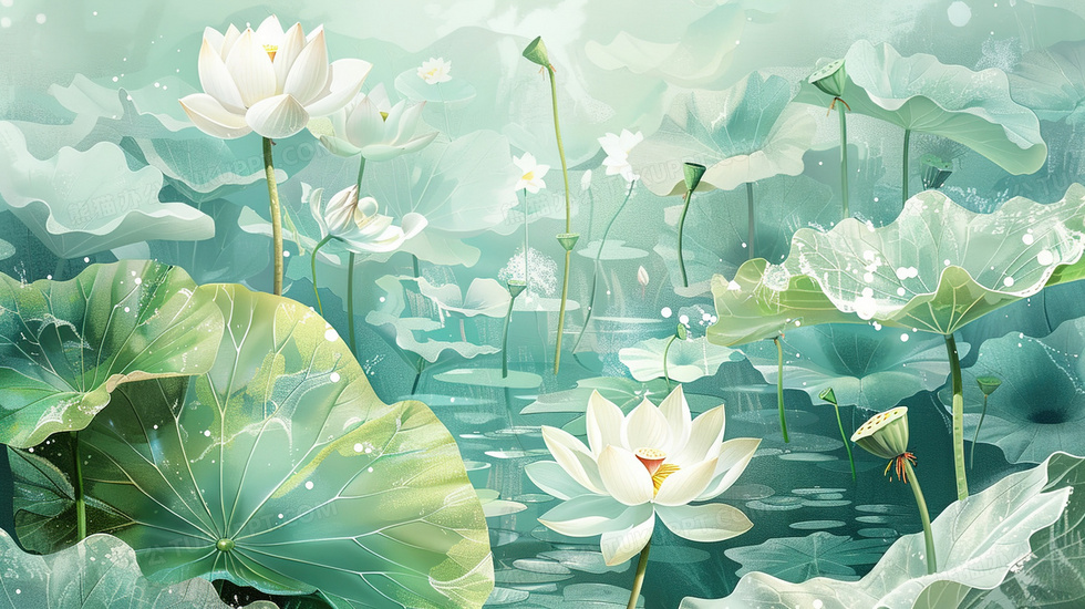 本作品内容为池塘水生植物荷花荷叶插画, 格式为 jpg, 大小3 MB, 图片尺寸为2912 x 1632, 源文件无水印, 欢迎使用熊猫办公。 如认为平台内容涉嫌侵权,可通过邮件:tousu@tukuppt.com提出书面通知,我们将及时处理。