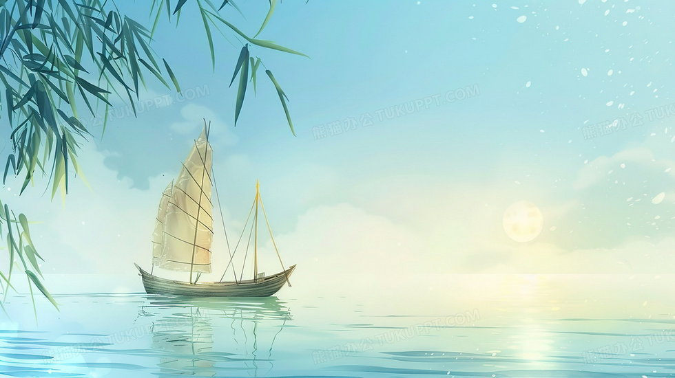 本作品内容为端午江面上的帆船插画, 格式为 jpg, 大小2 MB, 图片尺寸为2912 x 1632, 源文件无水印, 欢迎使用熊猫办公。 如认为平台内容涉嫌侵权,可通过邮件:tousu@tukuppt.com提出书面通知,我们将及时处理。