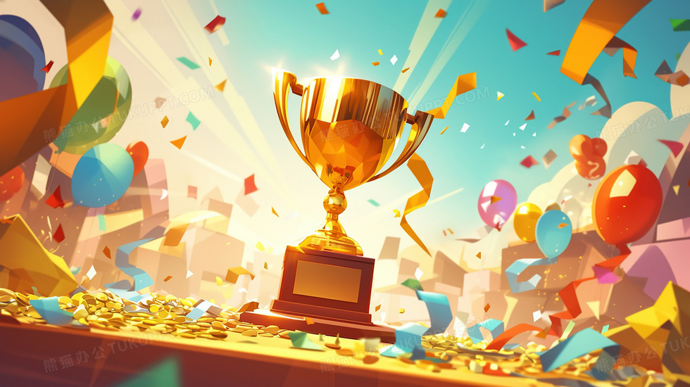 本作品内容为金色闪耀的荣誉奖杯插画, 格式为 jpg, 大小2 MB, 图片尺寸为2912 x 1632, 源文件无水印, 欢迎使用熊猫办公。 如认为平台内容涉嫌侵权,可通过邮件:tousu@tukuppt.com提出书面通知,我们将及时处理。
