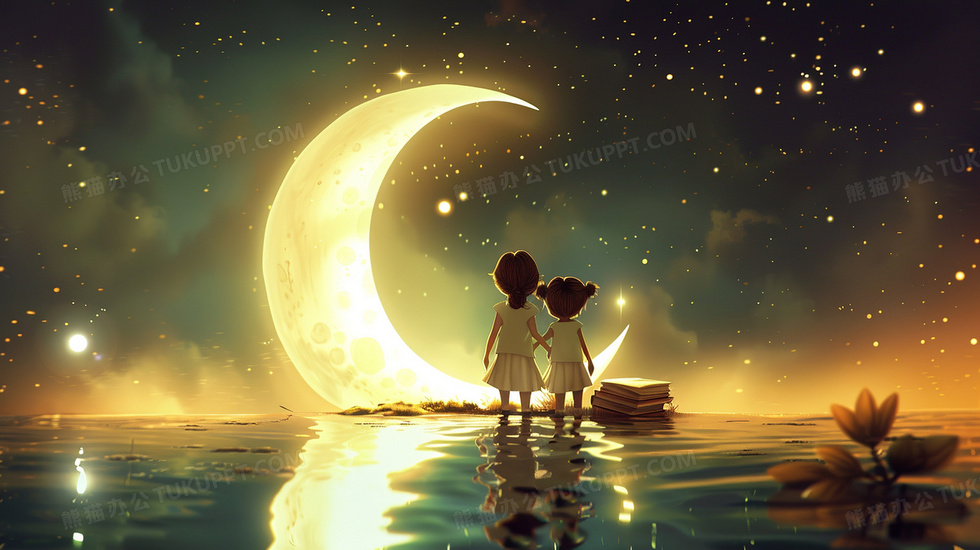 本作品内容为月光下两个孩子在湖水边玩乐插画, 格式为 jpg, 大小3 MB, 图片尺寸为2912 x 1632, 源文件无水印, 欢迎使用熊猫办公。 如认为平台内容涉嫌侵权,可通过邮件:tousu@tukuppt.com提出书面通知,我们将及时处理。