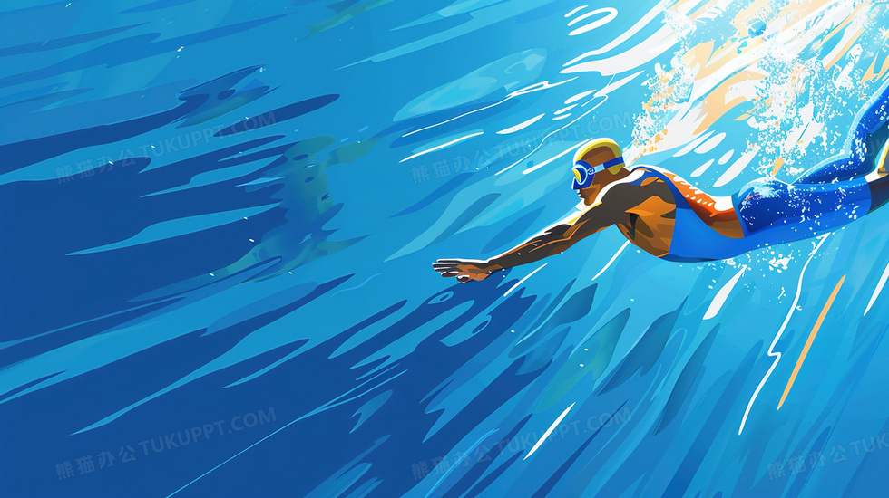 本作品内容为蓝色夏季游泳的运动员背景, 格式为 jpg, 大小3 MB, 图片尺寸为2912 x 1632, 作品中背景图片无需修改, 源文件无水印,可以直接使用, 欢迎使用熊猫办公。 如认为平台内容涉嫌侵权,可通过邮件:tousu@tukuppt.com提出书面通知,我们将及时处理。