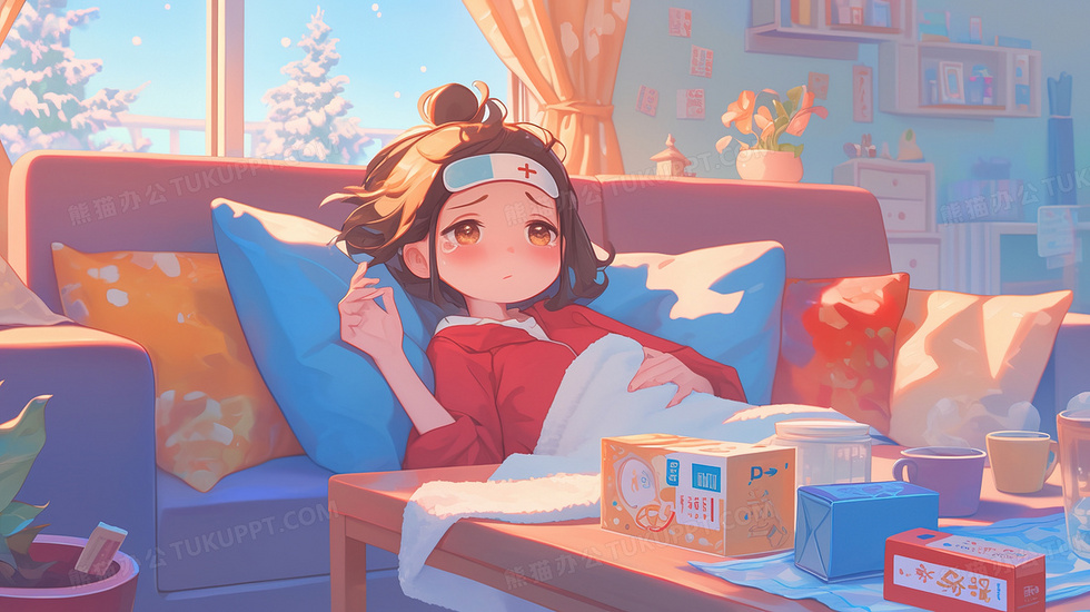 本作品内容为生病发烧难受躺沙发上休息的女孩插画, 格式为 jpg, 大小3 MB, 图片尺寸为2912 x 1632, 源文件无水印, 欢迎使用熊猫办公。 如认为平台内容涉嫌侵权,可通过邮件:tousu@tukuppt.com提出书面通知,我们将及时处理。