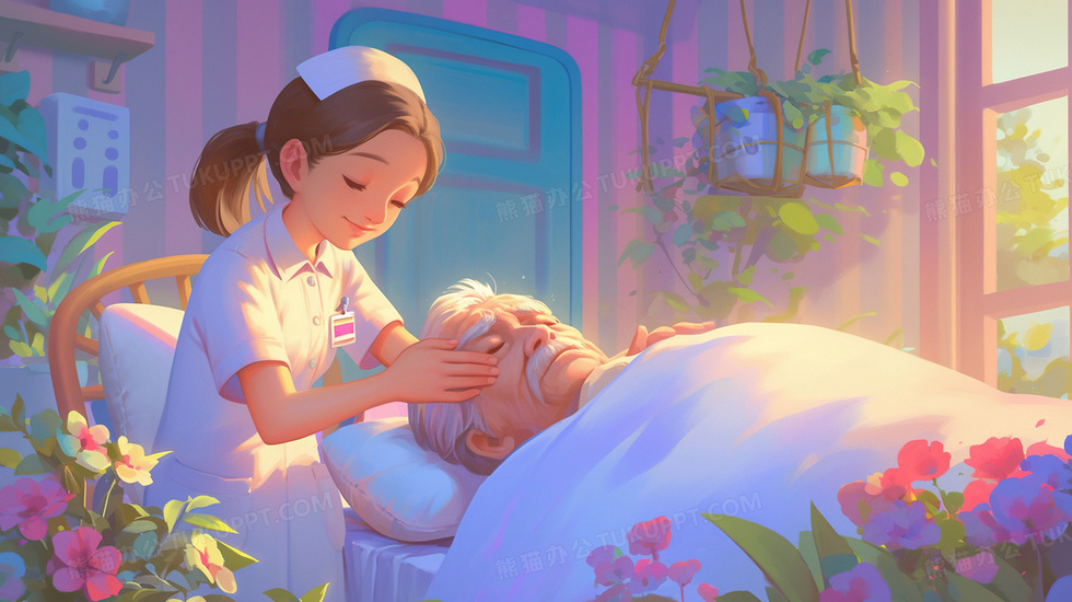 本作品内容为护士照顾生病的老人插画, 格式为 jpg, 大小3 MB, 图片尺寸为2912 x 1632, 源文件无水印, 欢迎使用熊猫办公。 如认为平台内容涉嫌侵权,可通过邮件:tousu@tukuppt.com提出书面通知,我们将及时处理。