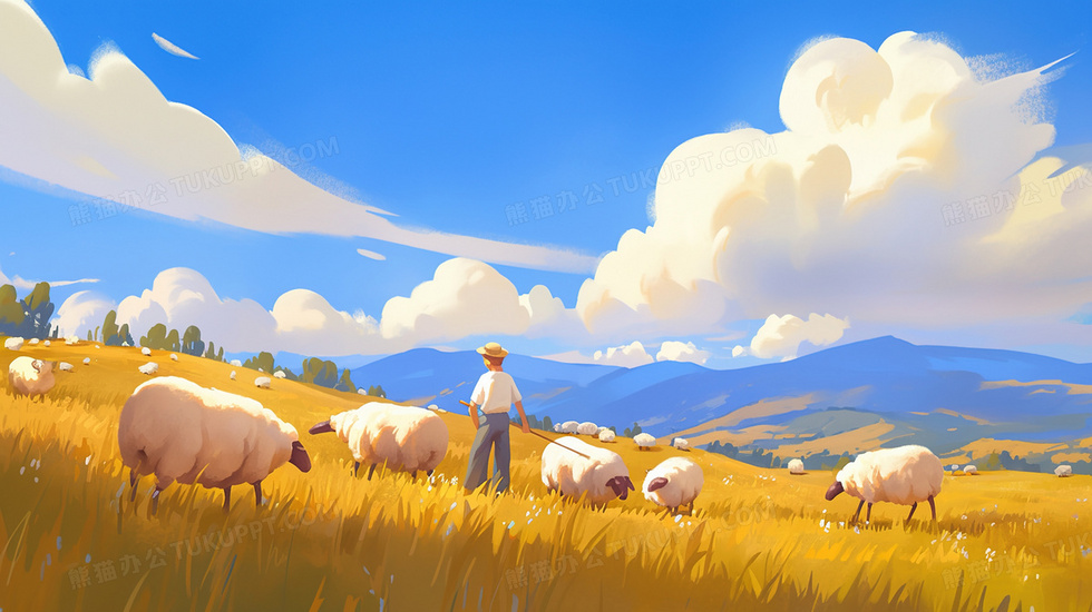 本作品内容为蓝天白云草原放羊的男孩插画, 格式为 jpg, 大小2 MB, 图片尺寸为2912 x 1632, 源文件无水印, 欢迎使用熊猫办公。 如认为平台内容涉嫌侵权,可通过邮件:tousu@tukuppt.com提出书面通知,我们将及时处理。