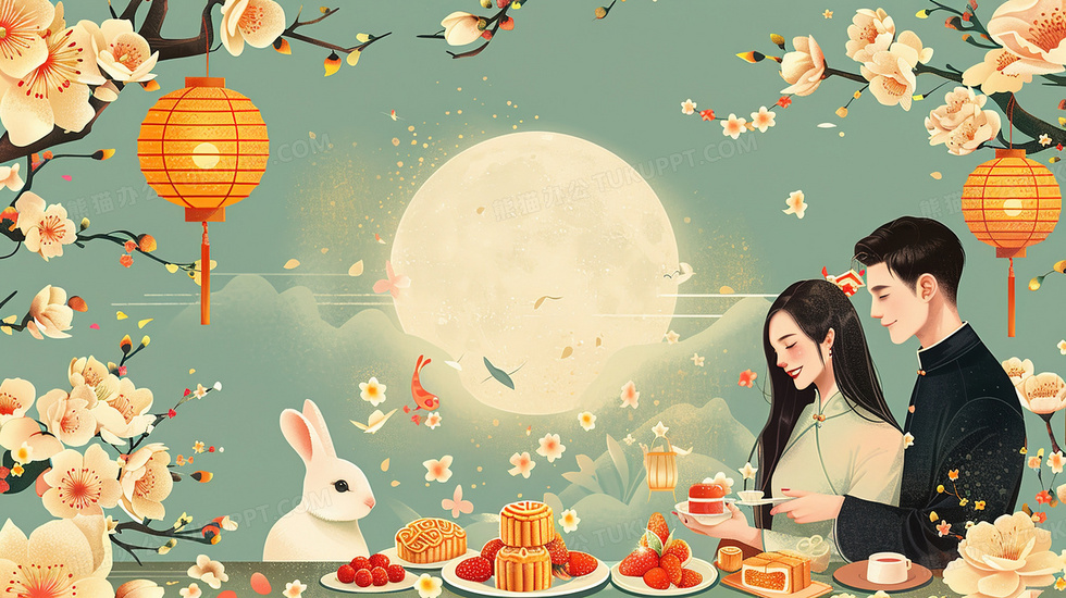 本作品内容为中秋节夫妻吃月饼过节家人团圆插画, 格式为 jpg, 大小3 MB, 图片尺寸为2912 x 1632, 源文件无水印, 欢迎使用熊猫办公。 如认为平台内容涉嫌侵权,可通过邮件:tousu@tukuppt.com提出书面通知,我们将及时处理。