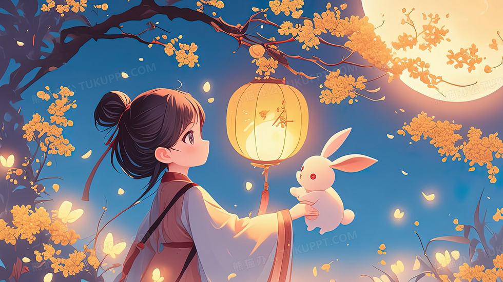 本作品内容为小女孩抱着灯笼和玉兔一起逛灯会插画, 格式为 jpg, 大小3 MB, 图片尺寸为2912 x 1632, 源文件无水印, 欢迎使用熊猫办公。 如认为平台内容涉嫌侵权,可通过邮件:tousu@tukuppt.com提出书面通知,我们将及时处理。