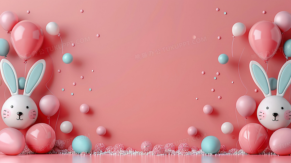 本作品内容为粉色气球和兔子元素的背景, 格式为 jpg, 大小2 MB, 图片尺寸为2912 x 1632, 作品中背景图片无需修改, 源文件无水印,可以直接使用, 欢迎使用熊猫办公。 如认为平台内容涉嫌侵权,可通过邮件:tousu@tukuppt.com提出书面通知,我们将及时处理。