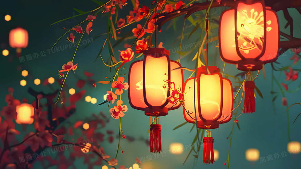 本作品内容为中国2025年新年过年喜庆中式灯笼插画, 格式为 jpg, 大小8 MB, 图片尺寸为5824 x 3264, 源文件无水印, 欢迎使用熊猫办公。 如认为平台内容涉嫌侵权,可通过邮件:tousu@tukuppt.com提出书面通知,我们将及时处理。