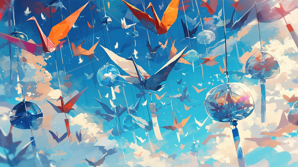 本作品内容为唯美梦幻治愈千纸鹤风铃插画, 格式为 jpg, 大小3 MB, 图片尺寸为2912 x 1632, 源文件无水印, 欢迎使用熊猫办公。 如认为平台内容涉嫌侵权,可通过邮件:tousu@tukuppt.com提出书面通知,我们将及时处理。