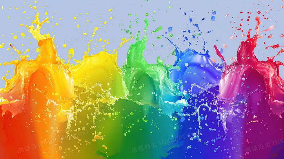 本作品内容为彩色液体飞溅油漆背景, 格式为 jpg, 大小3 MB, 图片尺寸为2912 x 1632, 作品中背景图片无需修改, 源文件无水印,可以直接使用, 欢迎使用熊猫办公。 如认为平台内容涉嫌侵权,可通过邮件:tousu@tukuppt.com提出书面通知,我们将及时处理。