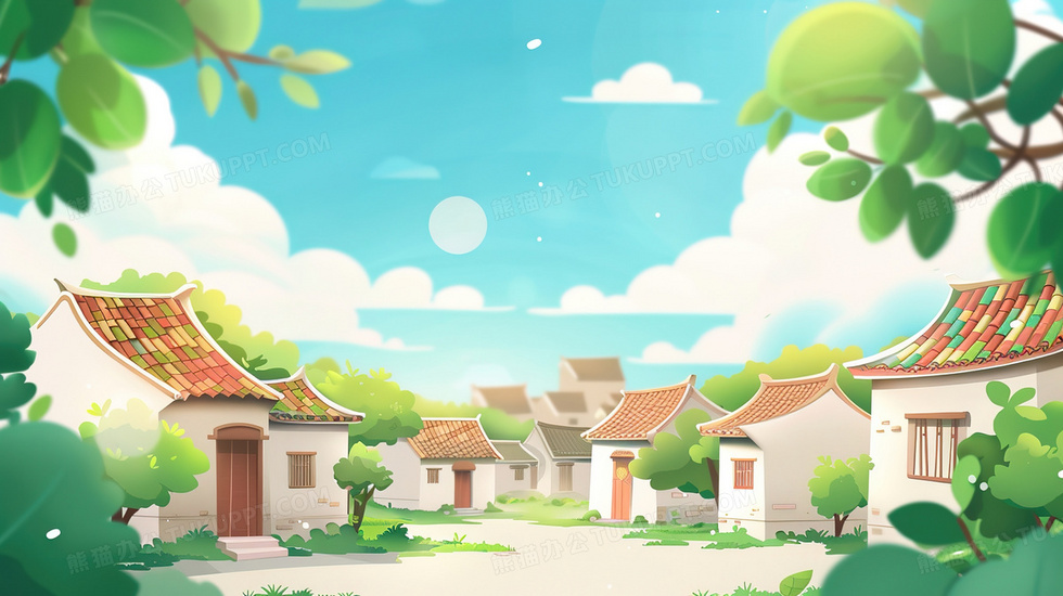 本作品内容为中式动画风格小村落, 格式为 jpg, 大小2 MB, 图片尺寸为2912 x 1632, 作品中背景图片无需修改, 源文件无水印,可以直接使用, 欢迎使用熊猫办公。 如认为平台内容涉嫌侵权,可通过邮件:tousu@tukuppt.com提出书面通知,我们将及时处理。