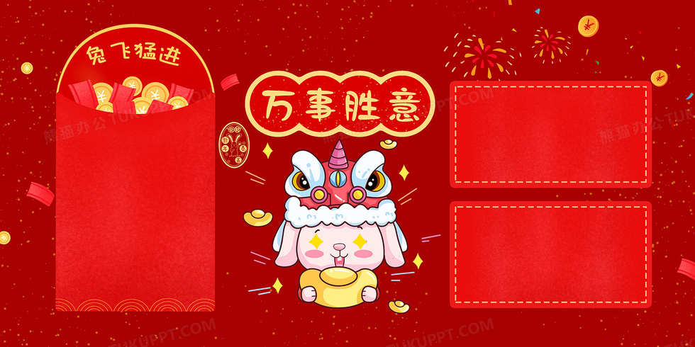 本作品内容为新年兔年电脑壁纸, 格式为 psd, 大小42 MB, 图片尺寸为4722 x 2361, 作品中背景图片无需修改, 源文件无水印,可以直接使用, 欢迎使用熊猫办公。 如认为平台内容涉嫌侵权,可通过邮件:tousu@tukuppt.com提出书面通知,我们将及时处理。