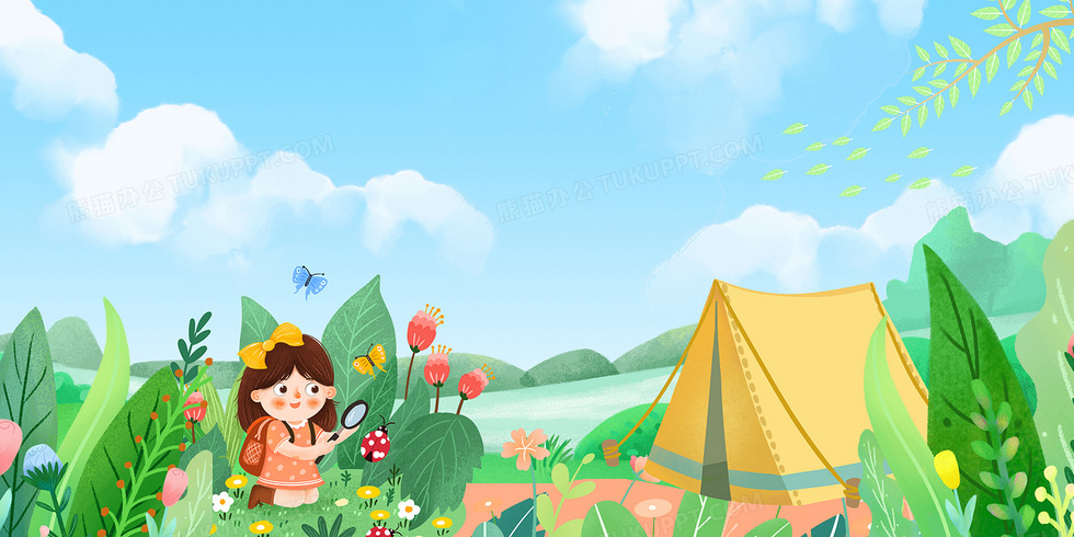 本作品内容为春天卡通插画探险露营郊游背景, 格式为 psd, 大小67 MB, 图片尺寸为4724 x 2362, 作品中背景图片无需修改, 源文件无水印,可以直接使用, 欢迎使用熊猫办公。 如认为平台内容涉嫌侵权,可通过邮件:tousu@tukuppt.com提出书面通知,我们将及时处理。