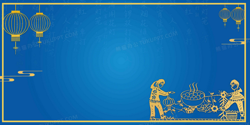 本作品内容为简约大气的蓝金元宵古诗习俗背景, 格式为 psd, 大小8 MB, 图片尺寸为4724 x 2362, 作品中背景图片无需修改, 源文件无水印,可以直接使用, 欢迎使用熊猫办公。 如认为平台内容涉嫌侵权,可通过邮件:tousu@tukuppt.com提出书面通知,我们将及时处理。
