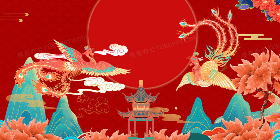 本作品内容为红色中国风浴火重生国潮凤凰背景, 格式为 psd, 大小55 MB, 图片尺寸为4724 x 2362, 作品中背景图片无需修改, 源文件无水印,可以直接使用, 欢迎使用熊猫办公。 如认为平台内容涉嫌侵权,可通过邮件:tousu@tukuppt.com提出书面通知,我们将及时处理。