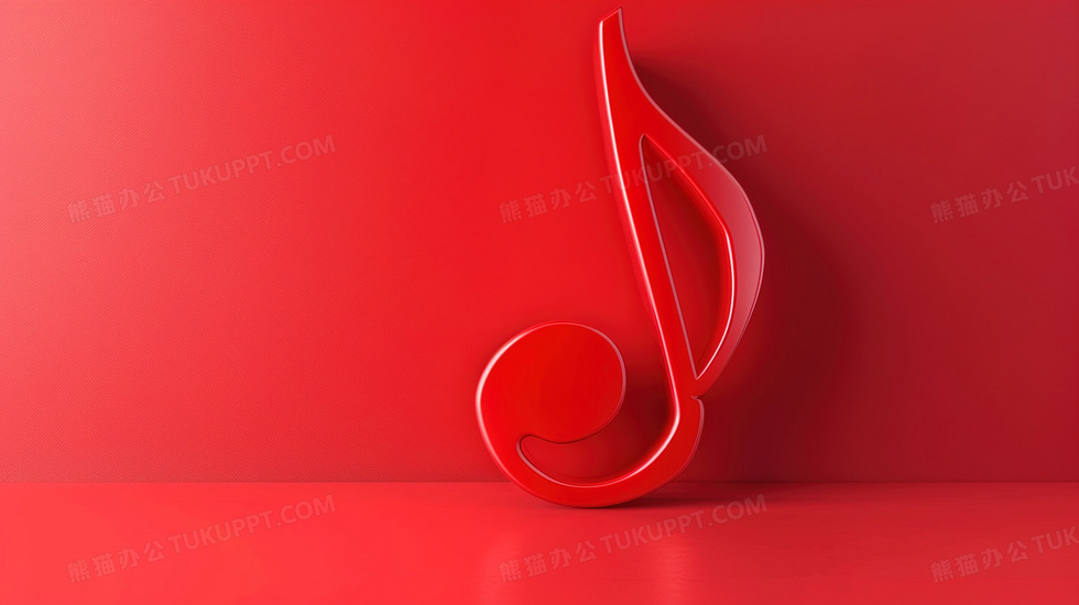 本作品内容为红色立体音乐符号质感背景, 格式为 jpg, 大小2 MB, 图片尺寸为2912 x 1632, 作品中背景图片无需修改, 源文件无水印,可以直接使用, 欢迎使用熊猫办公。 如认为平台内容涉嫌侵权,可通过邮件:tousu@tukuppt.com提出书面通知,我们将及时处理。