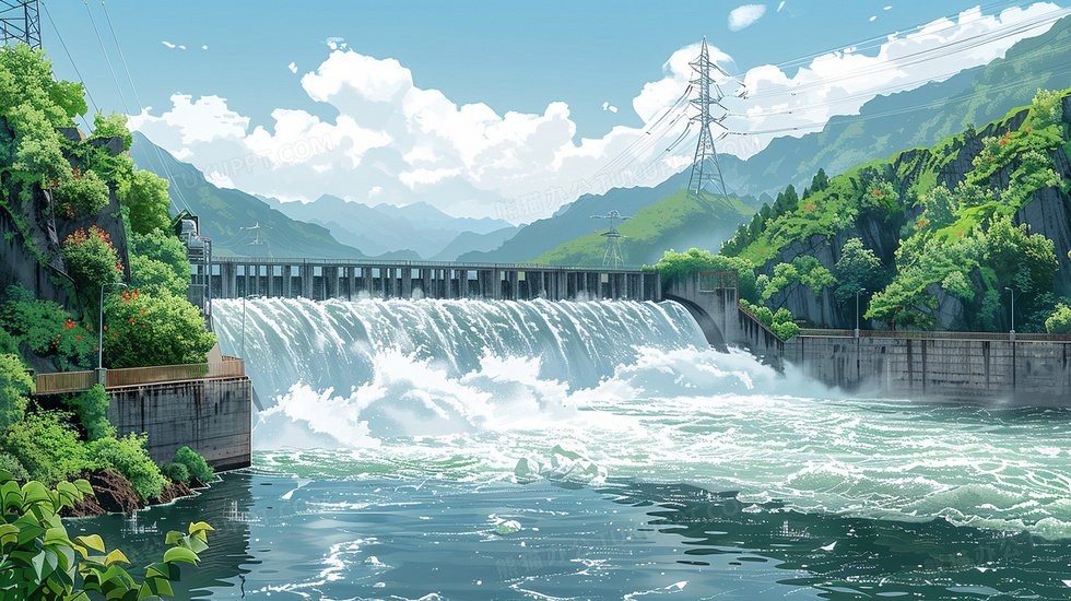 本作品内容为夏天水电站开闸放水动漫插画, 格式为 jpg, 大小4 MB, 图片尺寸为2912 x 1632, 源文件无水印, 欢迎使用熊猫办公。 如认为平台内容涉嫌侵权,可通过邮件:tousu@tukuppt.com提出书面通知,我们将及时处理。