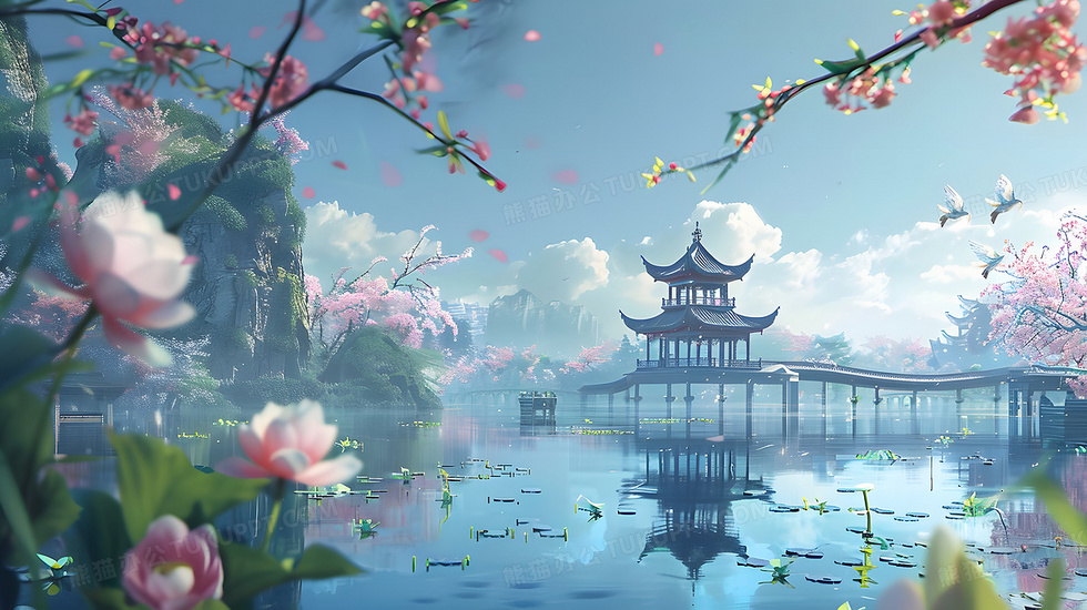 本作品内容为中国夏天荷花池塘庭院插画, 格式为 jpg, 大小9 MB, 图片尺寸为5824 x 3264, 源文件无水印, 欢迎使用熊猫办公。 如认为平台内容涉嫌侵权,可通过邮件:tousu@tukuppt.com提出书面通知,我们将及时处理。