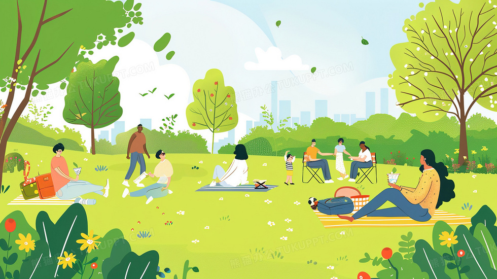 本作品内容为公园里草地野餐的年轻人插画, 格式为 jpg, 大小3 MB, 图片尺寸为2912 x 1632, 源文件无水印, 欢迎使用熊猫办公。 如认为平台内容涉嫌侵权,可通过邮件:tousu@tukuppt.com提出书面通知,我们将及时处理。