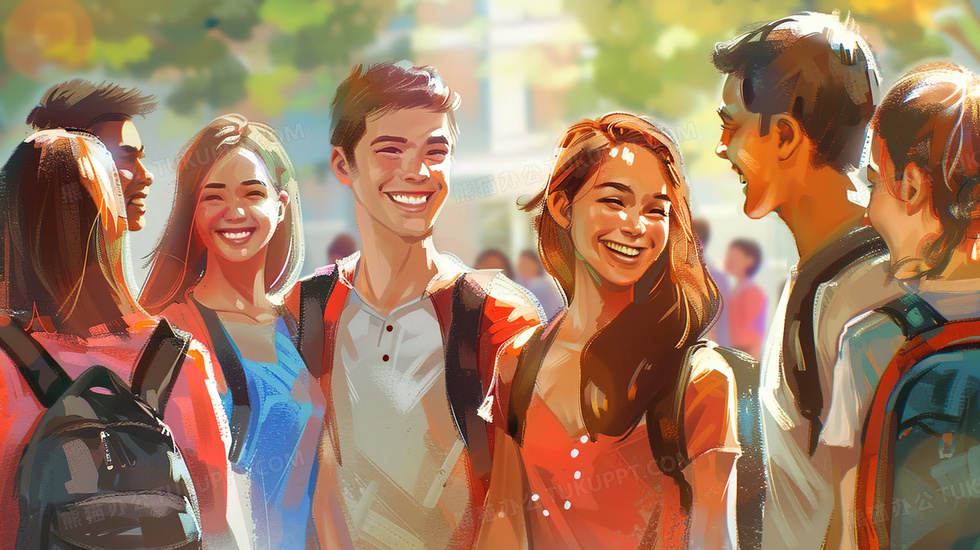 本作品内容为开心交谈的年轻人插画, 格式为 jpg, 大小3 MB, 图片尺寸为2912 x 1632, 源文件无水印, 欢迎使用熊猫办公。 如认为平台内容涉嫌侵权,可通过邮件:tousu@tukuppt.com提出书面通知,我们将及时处理。