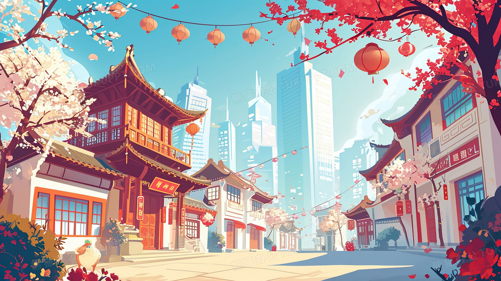 本作品内容为中国风古典建筑街道插画, 格式为 jpg, 大小3 MB, 图片尺寸为2912 x 1632, 源文件无水印, 欢迎使用熊猫办公。 如认为平台内容涉嫌侵权,可通过邮件:tousu@tukuppt.com提出书面通知,我们将及时处理。