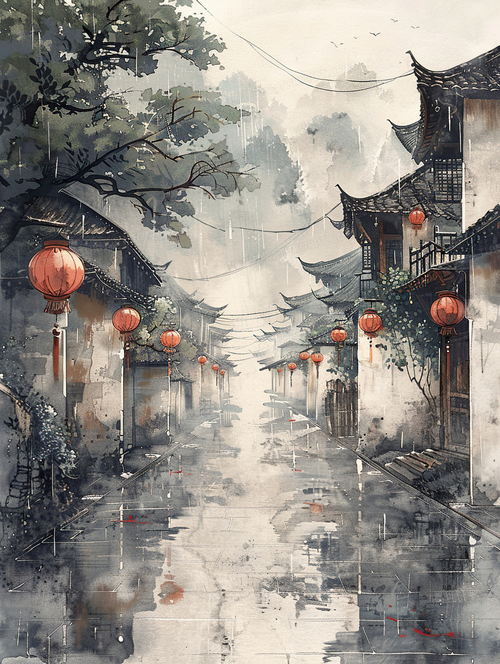本作品内容为中国风山水江南古镇水墨插画, 格式为 jpg, 大小4 MB, 图片尺寸为1856 x 2464, 源文件无水印, 欢迎使用熊猫办公。 如认为平台内容涉嫌侵权,可通过邮件:tousu@tukuppt.com提出书面通知,我们将及时处理。
